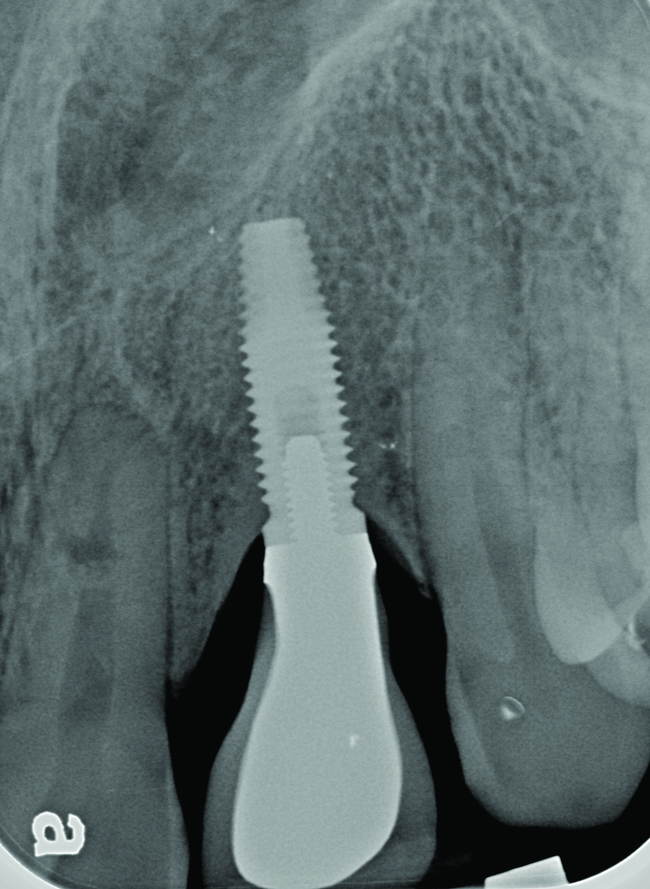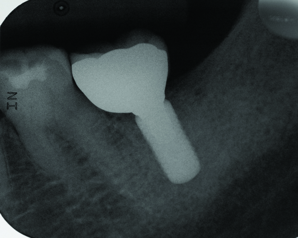 The authors believe, in accordance with the American Academy of Periodontology’s whitepaper,21 that clinicians should obtain radiographs that establish baseline bone levels both at the time of implant placement and immediately following final prosthesis insertion to facilitate comparison. They should also be taken at the first signs of disease that could signal bone loss, including change in tissue tone and color, bleeding, purulence, and increased or increasing probing depths—all of which should be evaluated at every visit.21