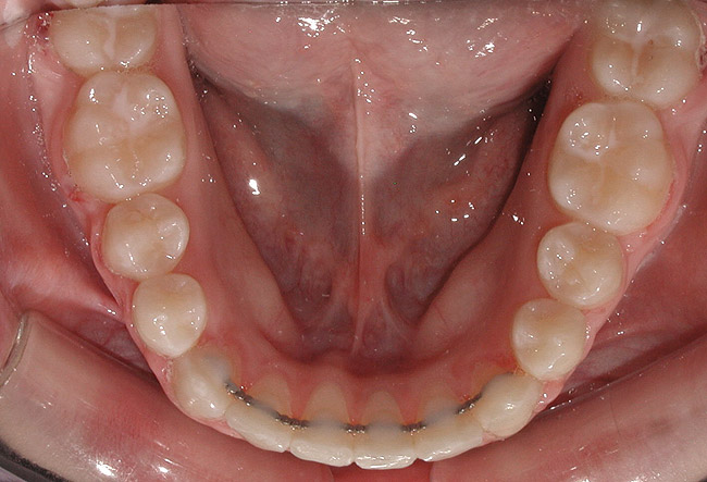Figure 12 Patient with a bonded retainer on the lower anterior teeth for “lifetime” retention.