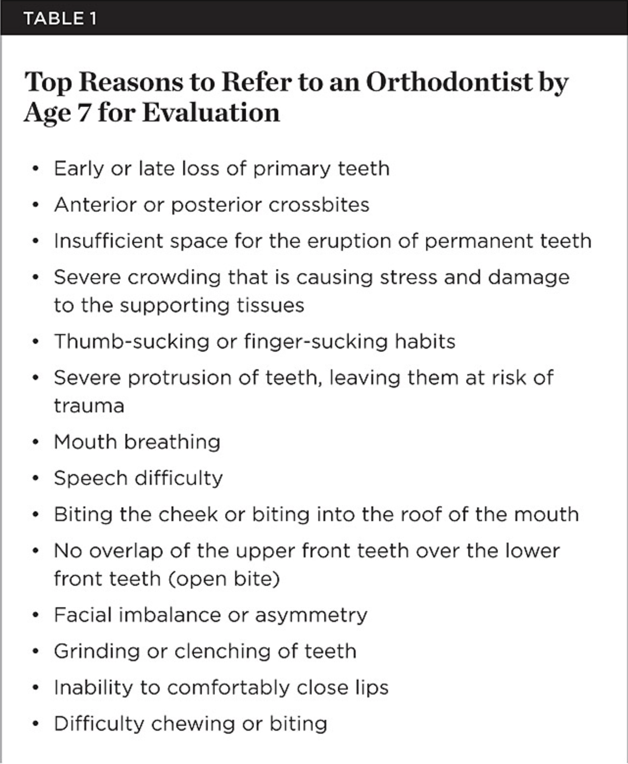 1. American Association of Orthodontists. Your Child’s First Orthodontic Checkup: No Later Than Age 7 [brochure]. 2008:1-4. www.aaomembers.org/Resources/upload/Your_Childs_First_Checkup-l.pdf. Accessed February 22, 2013