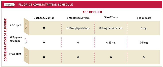 14. Centers for Disease Control. Dietary Fluoride Supplement Schedule. Last reviewed: April 2010. Available at: www.cdc.gov/fluoridation/other/spplmnt_schdl.htm. Accessed: October 27, 2010.