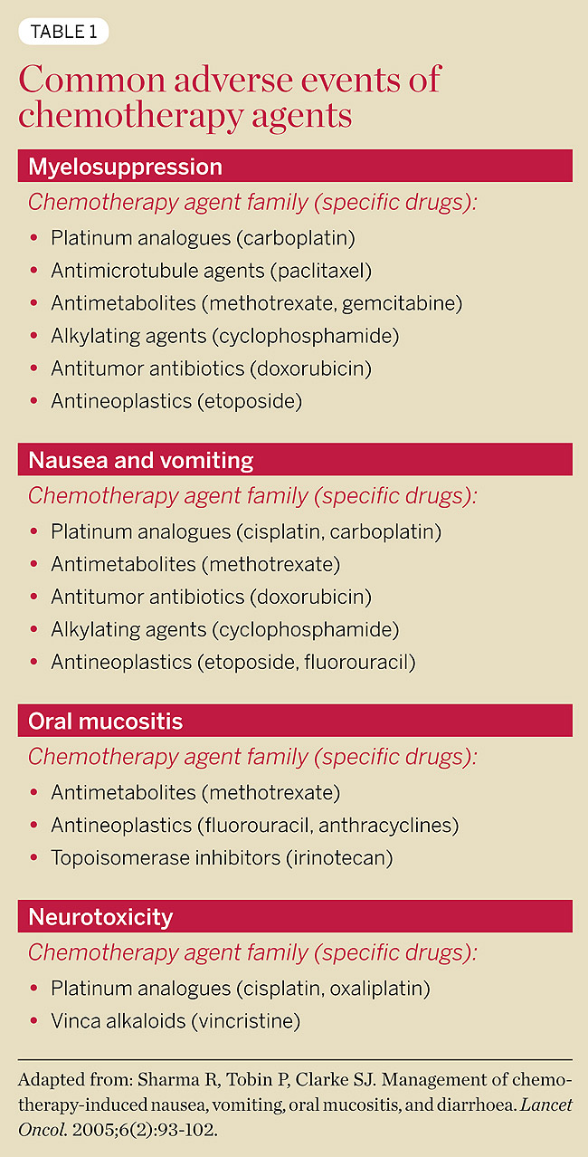 3. Sharma R, Tobin P, Clarke SJ. Management of chemotherapy-induced nausea, vomiting, oral mucositis, and diarrhoea. Lancet Oncol. 2005;6(2):93-102.