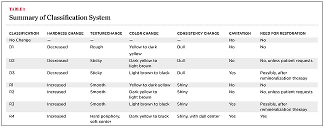 The objective of the authors is to introduce a simple, efficient classification system for root-surface quality to aid the practitioner in diagnosis, treatment planning, and assessing the outcome of remineralization therapy.